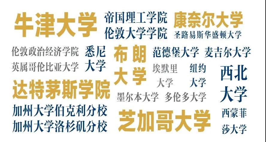 根据US News、QS、TIMES等权威机构排名,近四年(2018-2021)学生获得世界排名前50、美国排名前50、英国排名前10名校录取占比分别为84.9%、82.3%、86.3%、88.8%,录取学校包括但不限于: