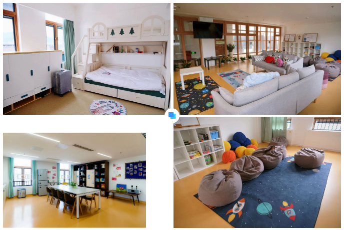舒适环境和配套:配有温馨家具。同时配套舒适的公共区域:有小厨房,舒适的沙发,书架,益智玩具等家庭式社交空间。