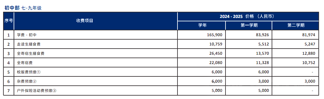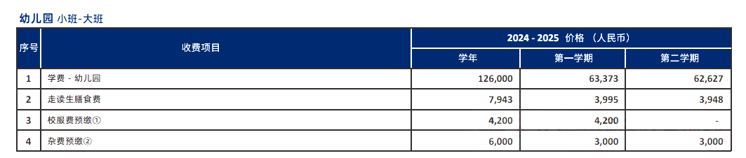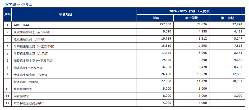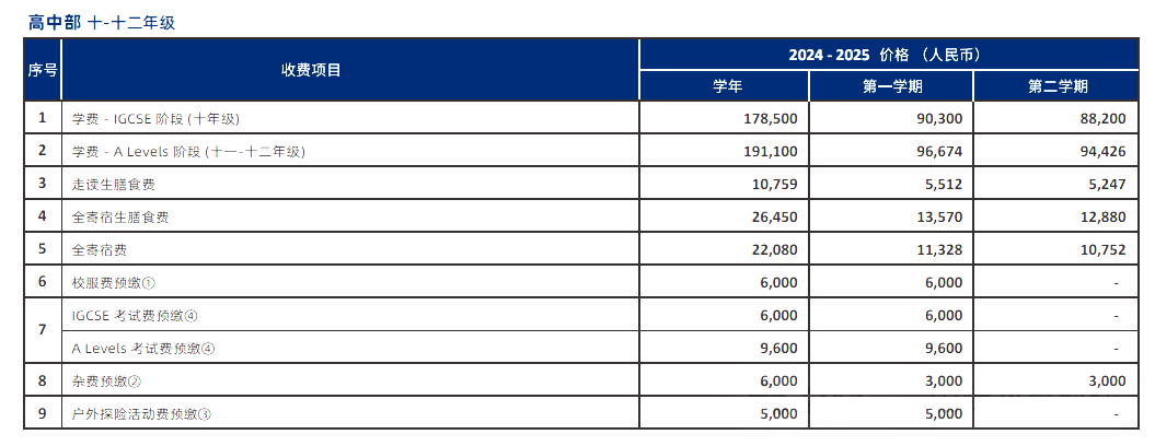① 校服费为标准配套费用。实际费用将根据学生的具体需求而有所不同,学校在学年结束时向家长提供学生的相关开支明细并进行结算。