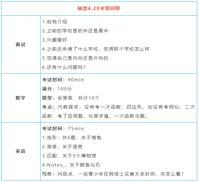 考生反映,这次赫贤学校数学部分的难度明显增加,出现了一些超纲题,尤其以代数为主。