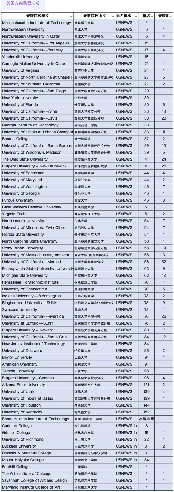 美国TOP30名校:麻省理工学院、西北大学(含卡塔尔校区5枚)、加州大学伯克利分校等29封顶尖录取