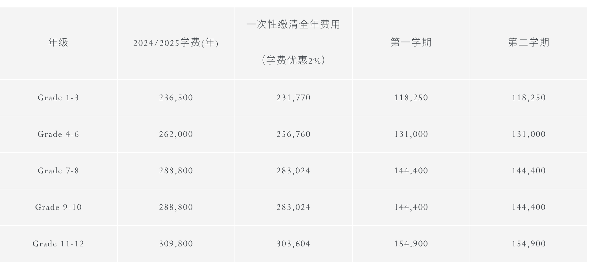 2024-2025学年深圳前海坎特伯雷国王外籍人员子女学校的收费标准参照如下:RMB